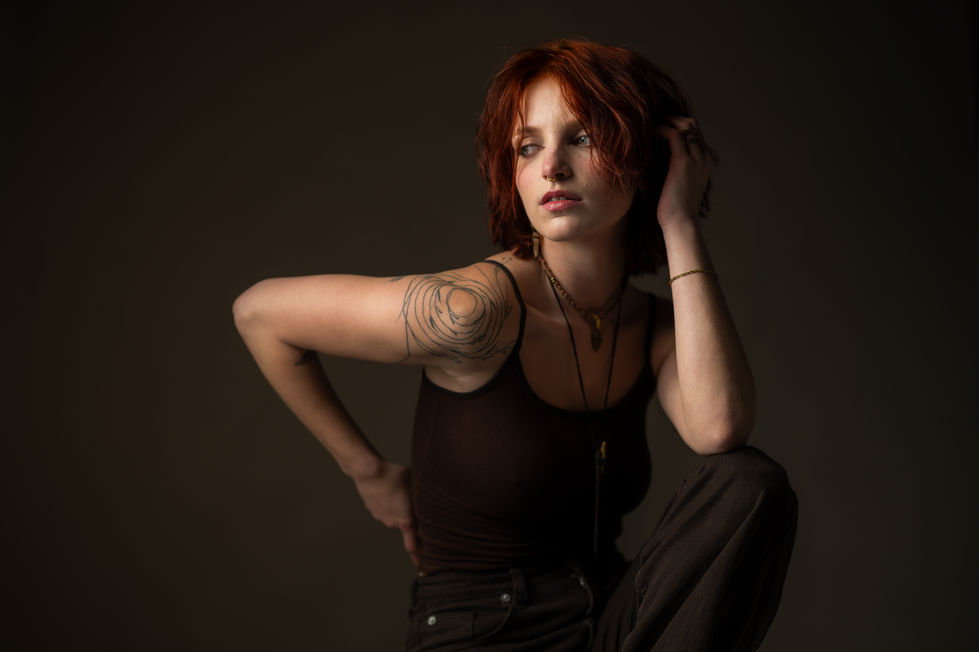 Elke sessie vindt plaats in mijn studio in Rummen of op locatie, waarbij gecontroleerd licht zorgt voor diepte en een zachte overgang tussen schaduw en highlight.